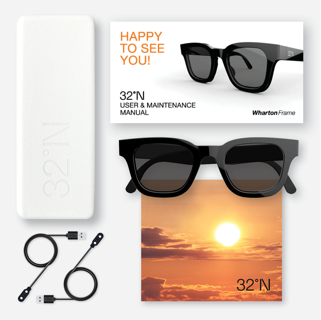 32°N addresses the need of people experiencing presbyopia, the age-related reduction in near vision. The glasses mimic natural human vision, instead of having to switch between sunglasses and reading glasses and without the difficult compromises of progressive lenses and bifocals.